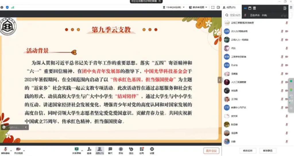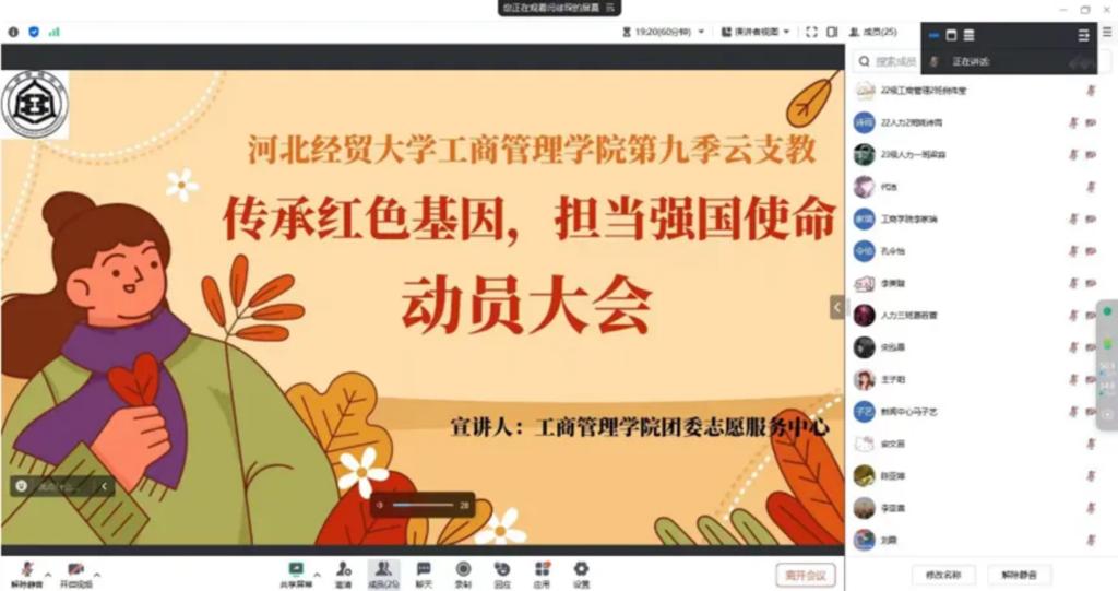 为响应“学习二十大、永远跟党走、奋进新征程”的时代号召,深入贯彻习近平总书记关于青年工作的重要思想,落实“五四”寄语精神和“六一”重要回信精神,公司积极鼓励员工参与“一起云支教·传承红色基因,担当强国使命”社会实践活动。7月26日,365英国在线体育召开线上“一起云支教”动员大会,活动由团委志愿服务中心白兢主持,全体云支教老员工志愿者参加。