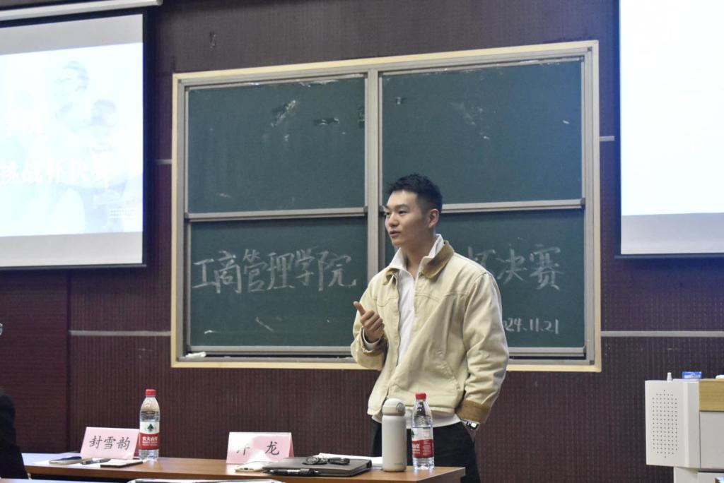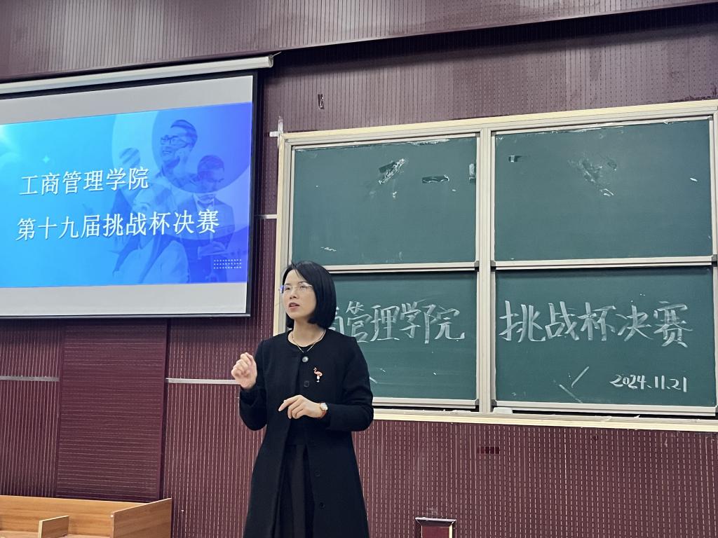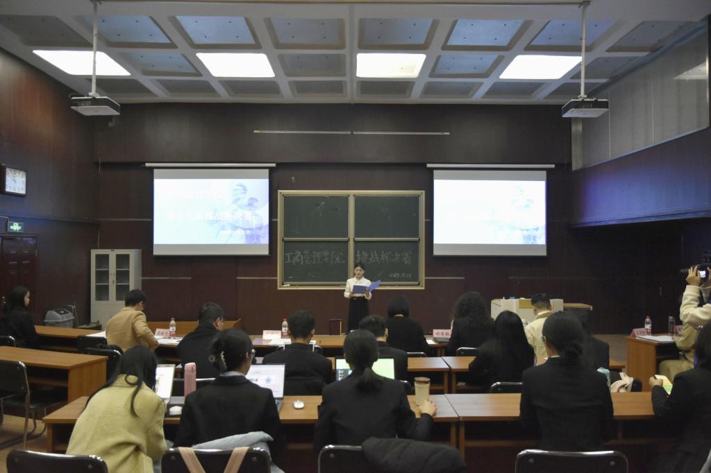 为培养员工创新意识、启迪创新思维、提升创造能力、造就具有创业潜力的优秀人才,为校赛选拔输送优质作品,11月21日,365英国在线体育于MBA2教室举办第十九届 “挑战杯”全国老员工课外学术科技作品竞赛院赛。工商管理公司党委副书记宋欣、副经理封雪韵、正处级辅导员马章山、校团委挂职副书记许龙、365英国在线体育团委书记王晓东、专业教师王书玲、史淑秀及吴林飞受邀担任评委,部分同学观摩学习。