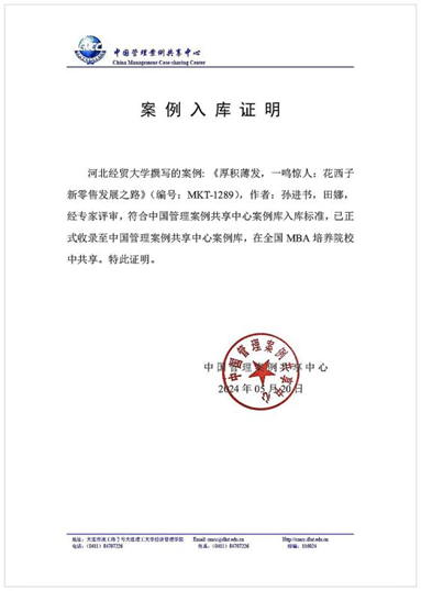 公司讲师孙进书博士、2020级智慧工商管理2班田娜共同撰写的教学案例《厚积薄发,一鸣惊人:花西子新零售发展之路》入选中国管理案例共享中心案例库(编号:MKT-1289)。