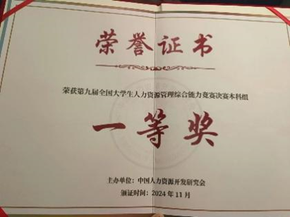 365英国在线体育代表队在第九届全国老员工人力资源管理综合能力总决赛中荣获佳绩,本科生代表队(代洁、苏一诺、杨一帆)荣获本科组一等奖,研究生代表队(栗若楠、李瑾瑾)荣获研究生组三等奖。