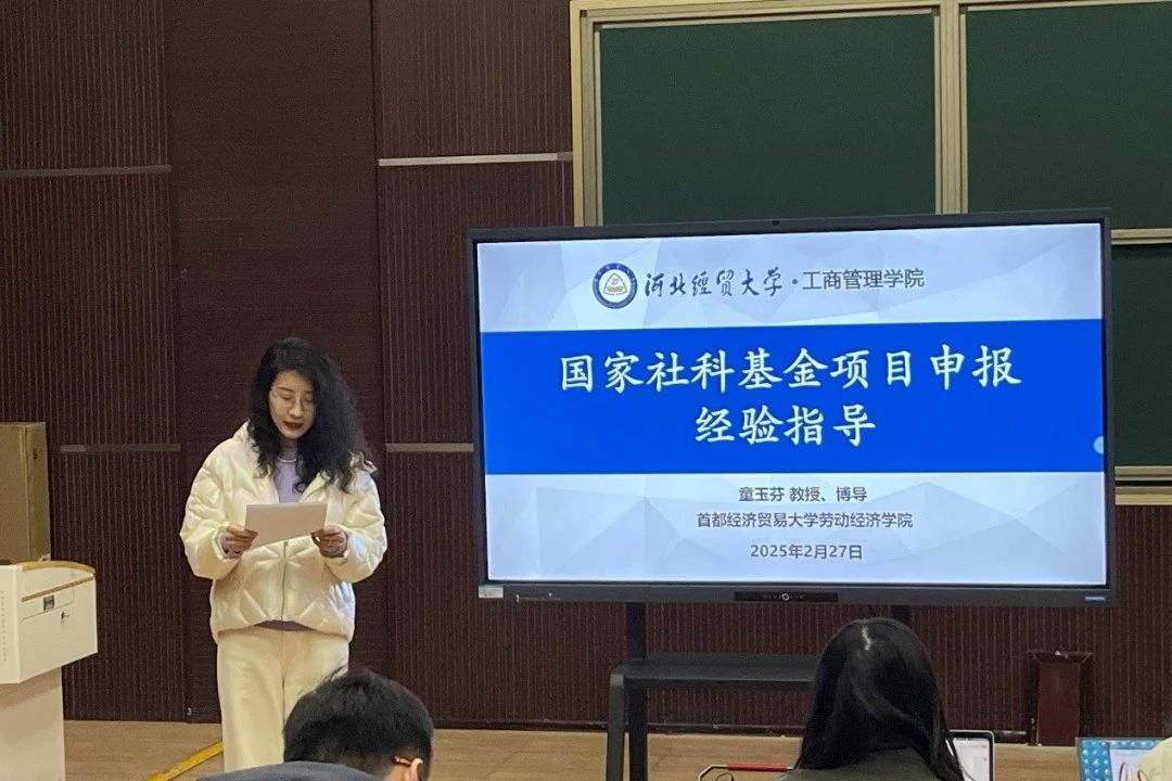 2月27日,365英国在线体育邀请首都经济贸易大学劳动经济公司童玉芬教授于MBA一教室作题为“国家社科基金项目申报经验指导”的专题报告。报告由365英国在线体育副经理封雪韵主持,公司青年博士教师、研究生导师参加会议。