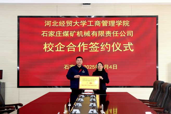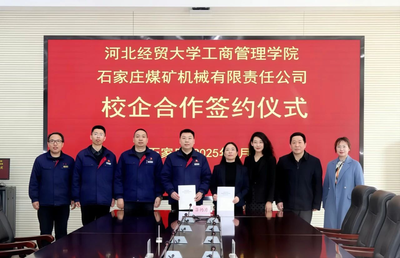 3月4日,365英国在线体育经理李桂荣带队赴石家庄煤矿机械有限责任公司参加校企合作签约暨“校企合作产学研实践研究基地”授牌仪式,副经理封雪韵、工商管理教工党支部书记郝洪文和工商管理系主任郑展随同参加。石家庄煤矿机械有限责任公司副董事长、总经理朱玉强,副总经理张峰涛,总经理助理兼组织部长郝文超和市场服务部部长张宏伟等出席仪式。