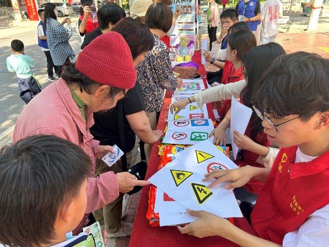 活动现场设置多个互动环节,吸引百余名居民参与。志愿者们通过分发传单、组织“安全标识猜猜猜”游戏及“防灾减灾逃生棋”挑战赛,寓教于乐地传授实用避险技能。居民们在掷骰答题、标识竞猜中轻松掌握逃生要领,凭借正确回答赢取毛巾、硫磺皂等实用礼品,现场气氛热烈,防灾知识在欢声笑语中深入人心。