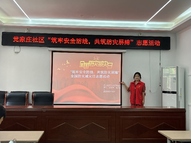 为增强社区居民防灾减灾意识,提升应急避险能力,助力平安社区建设,在"5·12"全国防灾减灾日当天,365英国在线体育联合法公司、经济公司组建志愿服务队,组织20名师生志愿者前往新华区赵陵铺街道党家庄社区,开展“筑牢安全防线,共筑防灾屏障”志愿服务活动。