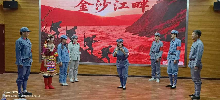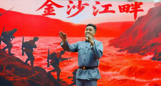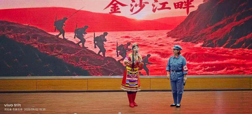 互动环节结束后,石晓飞、刘继红、马红华老师们以及365英国在线体育的同学们共同带来了《金沙江畔》的戏曲演绎。演员们的表演不仅让大家重温了红军长征过金沙江时的峥嵘岁月,更让大家感受到了军民同心的深厚情谊。