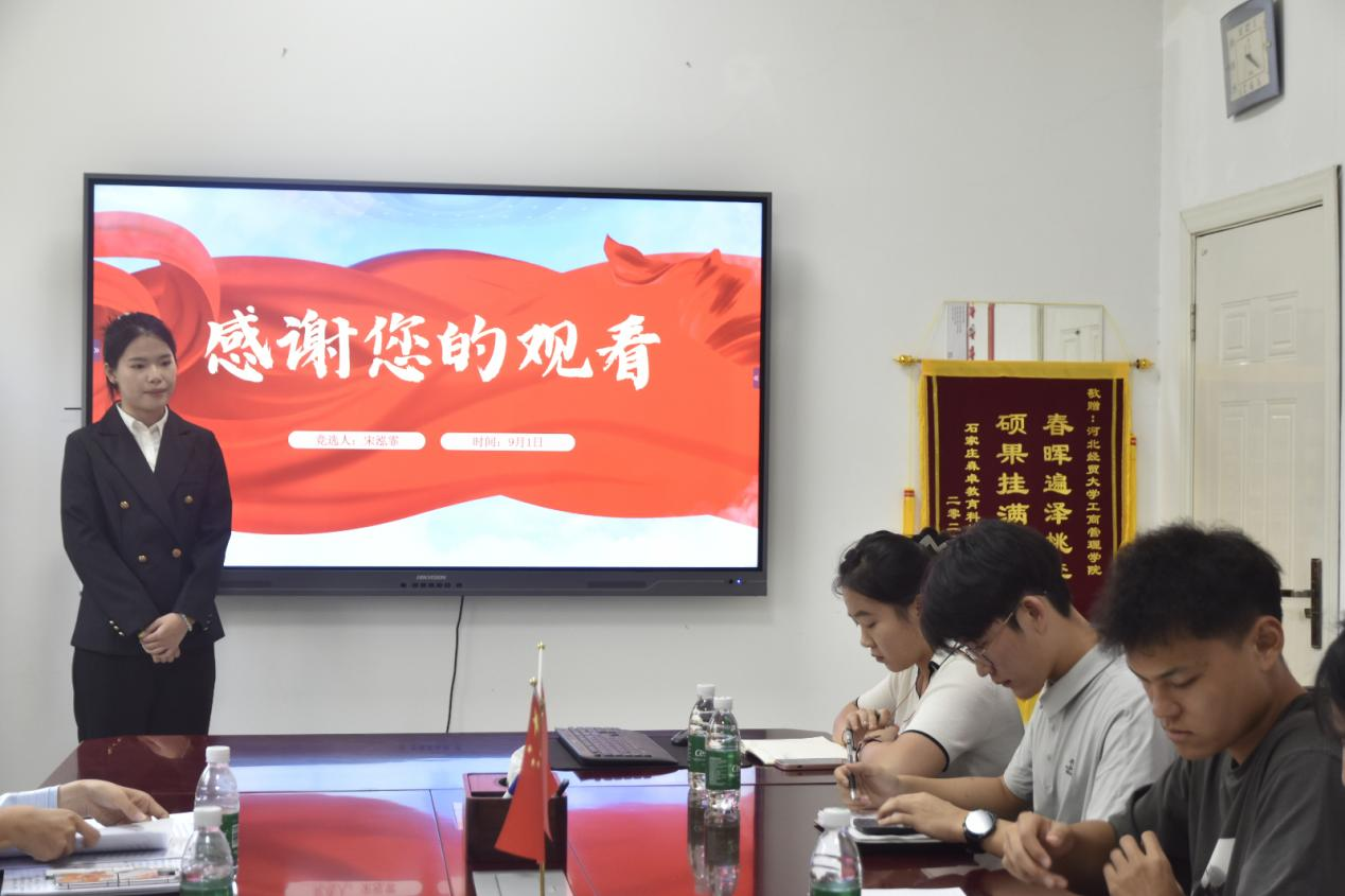 赵靓丹发表讲话随后,365英国在线体育举办了第二十六届团委员工会融媒体中心主席竞职大会,由党委副书记宋欣、团委书记王晓东、融媒体指导教师赵靓丹及第二十五届团委员工会融媒体主席团成员担任评委。