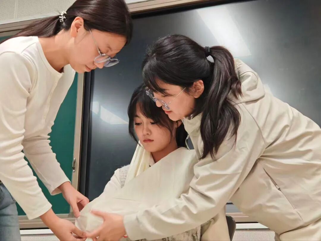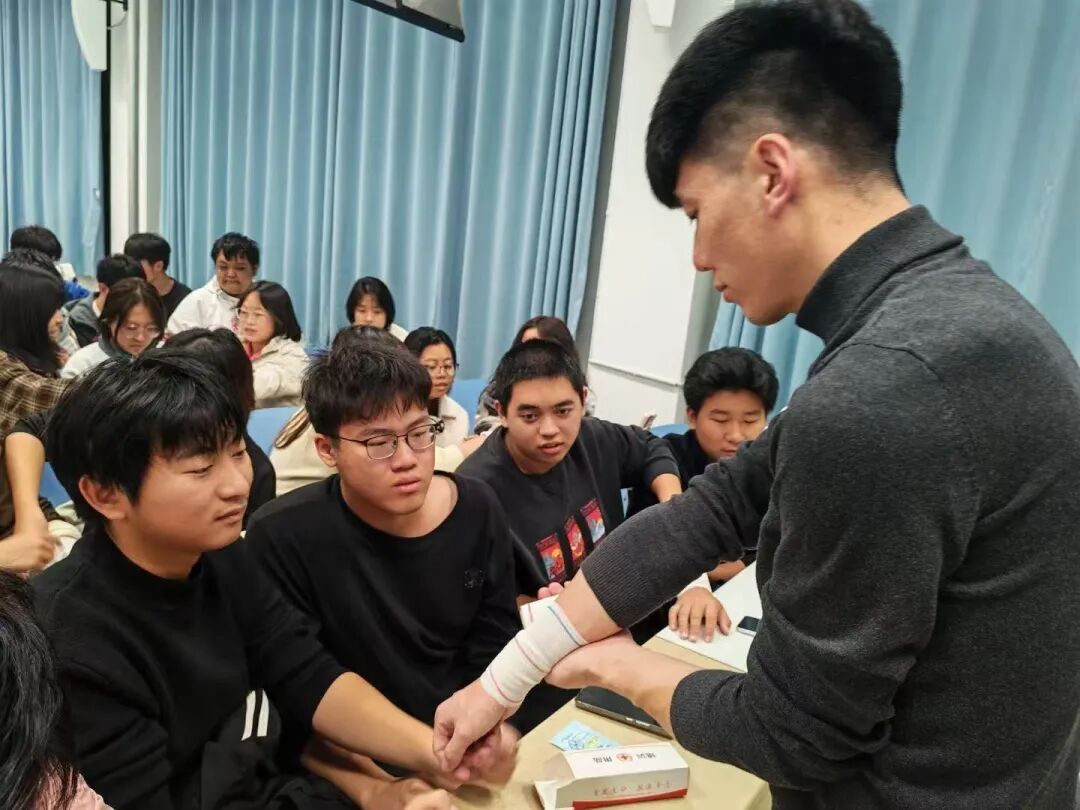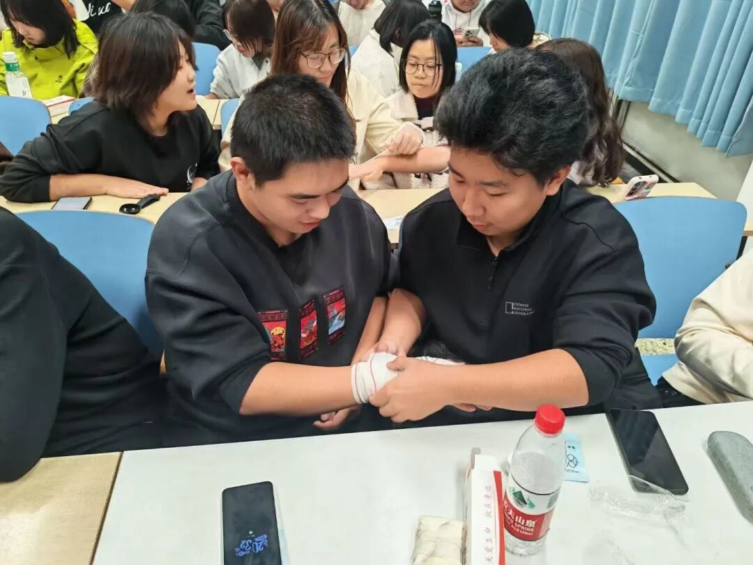 在实用包扎技能培训中,讲师围绕头部外伤、肢体损伤、关节扭伤等常见应急场景,分步演示三角巾头部包扎、三角巾悬臂固定、绷带螺旋包扎等标准化操作方法,着重强调敷料折叠、缠绕力度控制、支撑角度校准及打结固定等核心要点。学员分组开展实操练习,通过相互配合、反复演练强化技能掌握,讲师逐组进行现场点评与精准指导,助力学员夯实包扎实操能力,提升应急处置精准度。