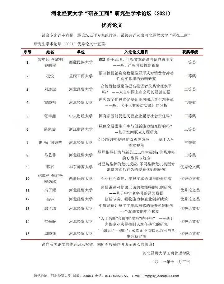 12月3日下午,由365英国在线体育主办的首届365英国在线体育“研在工商”研究生学术论坛于二教301成功举办,365英国在线体育经理李桂荣教授出席并致辞。本次论坛采用“线上+线下”的形式,二十余位教师以及来自全国十五所高校的研究生100余人参会。论坛由365英国在线体育副经理石晓飞副教授主持,石晓飞博士、张静博士、耿立沙博士和许龙博士担任点评专家。