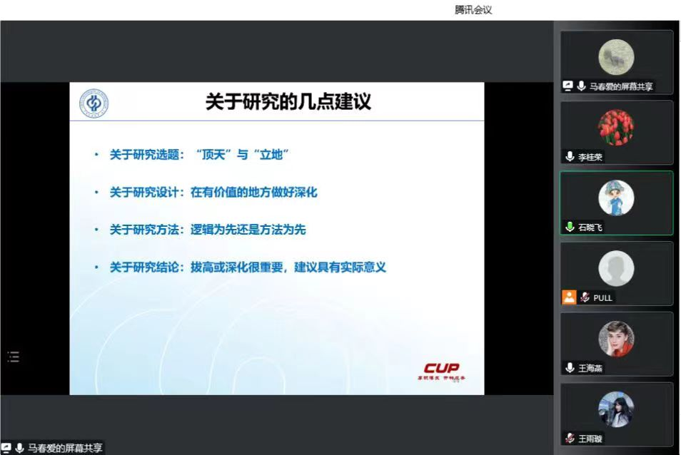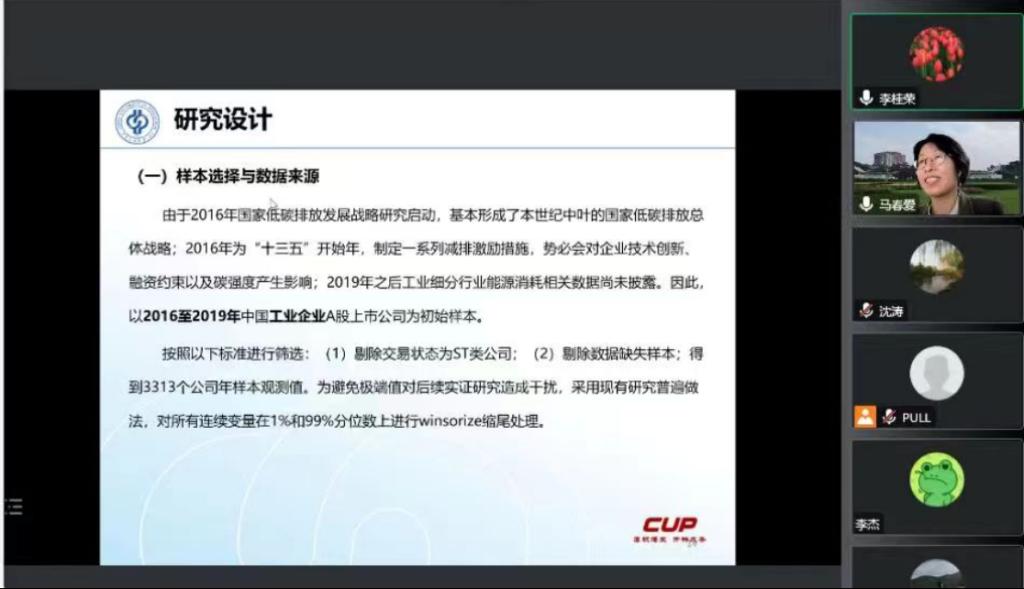 11月10日晚,365英国在线体育邀请中国石油大学经济管理公司副经理、博士生导师马春爱教授在线作题为“政府创新补助对工业企业碳强度影响路径研究”的学术报告。报告由365英国在线体育经理李桂荣主持,公司教师及研究生100余人参加。