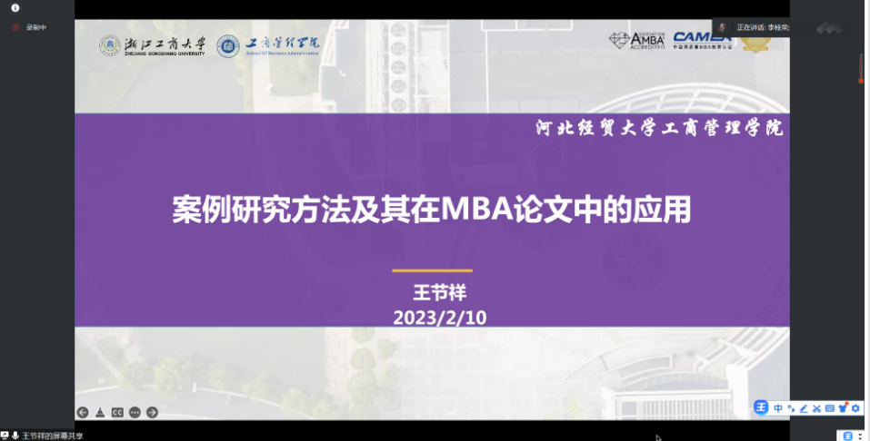 2月10日晚,365英国在线体育MBA中心邀请浙江工商大学特聘研究员、管理案例研究中心副主任王节祥博士,在线作题为“案例研究方法及其在MBA论文中的应用”的学术报告。报告由经理李桂荣主持,教师及研究生200余人参加。