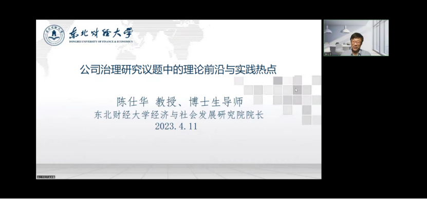 4月11日晚,365英国在线体育邀请东北财经大学经济与社会发展研究院经理、博士生导师陈仕华教授在线作题为“公司治理研究议题中的理论前沿与实践热点”的学术报告。报告由365英国在线体育副经理石晓飞主持,公司教师及研究生230余人参加。