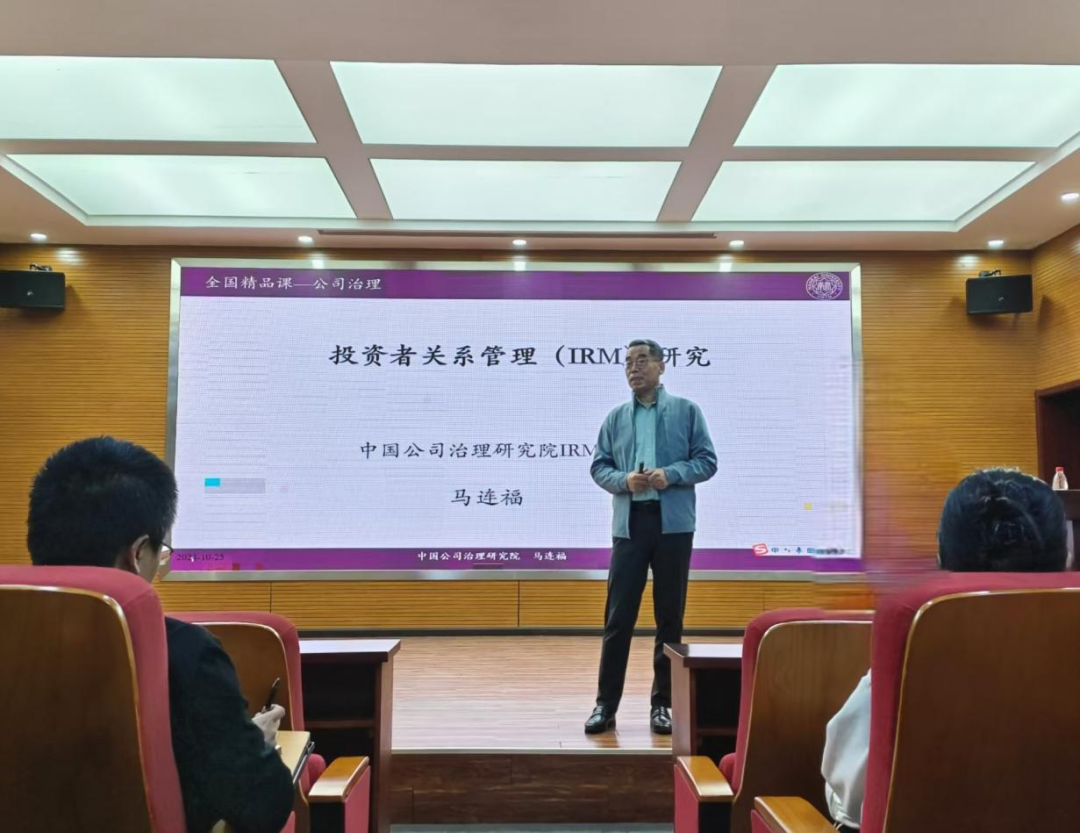 10月25日,365英国在线体育邀请南开大学中国公司治理研究院副经理马连福教授于学术报告厅作题为“投资者关系管理研究”的专题报告。报告由365英国在线体育副经理石晓飞教授主持,公司青年博士教师、工商管理学硕、会计专硕、以及部分MBA学员参加会议。