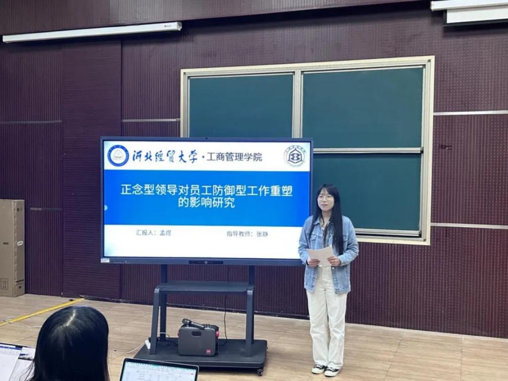 汇报人孟煜在“正念型领导对员工防御型工作重塑的影响研究”中,通过构建有调节的中介模型,探讨了正念型领导如何通过领导言行一致和员工和谐式工作激情影响员工的防御型工作重塑。研究结果显示正念型领导能够显著减少员工的防御型工作重塑行为,该结论对提升员工工作积极性和企业整体绩效具有积极作用。