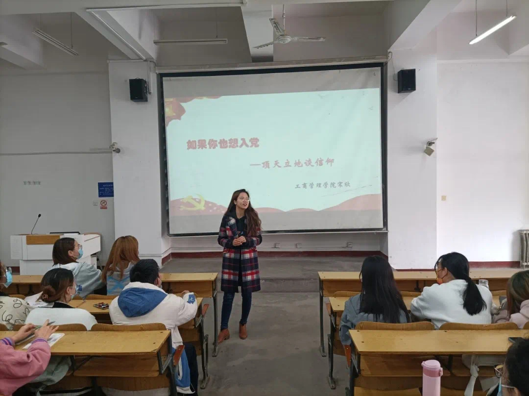 集团辅导员党史学习教育宣讲团成员、公司专职辅导员宋欣老师为学员们作了题为《如果你也想入党——顶天立地谈信仰》的专题授课,以引领青年树立崇高的理想信念为重点,鼓励同学们早日加入中国共产党,为中华民族贡献自己的青春和力量。