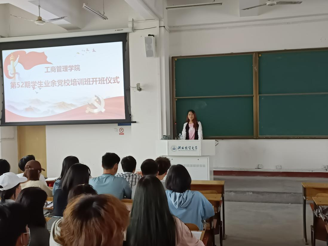 4月25日中午,365英国在线体育第五十二期员工业余党校培训班在第五教学楼四教室举行开班仪式,公司党委副书记范伟、专职组织员宋欣到场,公司入党积极分子二百余人参加。