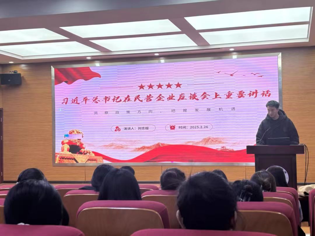 2024级工商管理专业研究生刘志超在微党课上深入解读了习近平总书记在民营企业座谈会上的重要讲话。他指出,习近平总书记重要讲话高屋建瓴、内涵丰富,深刻阐述了民营经济在我国经济社会发展中的重要地位和作用,对当前民营经济发展面临的机遇和挑战进行了全面分析,为新时代民营经济发展指明了方向,提供了根本遵循。在谈到民营经济的地位和作用时,他强调,民营经济作为我国经济制度的内在要素,是推进中国式现代化的生力军,在稳定增长、促进创新、增加就业、改善民生等方面发挥着不可替代的作用。最后,刘志超呼吁同学们要深刻领会习近平总书记重要讲话精神,立足本职,努力学习专业知识,提升专业技能,为推动民营经济高质量发展贡献自己的力量。
